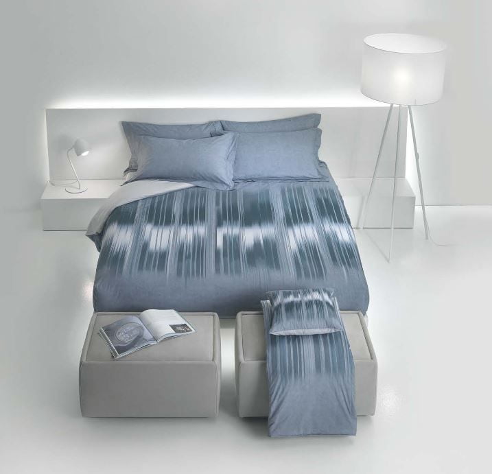 E’ formato da un sacco copripiumino 255x200cm più rimbocco, e due federe guanciale 50x80cm