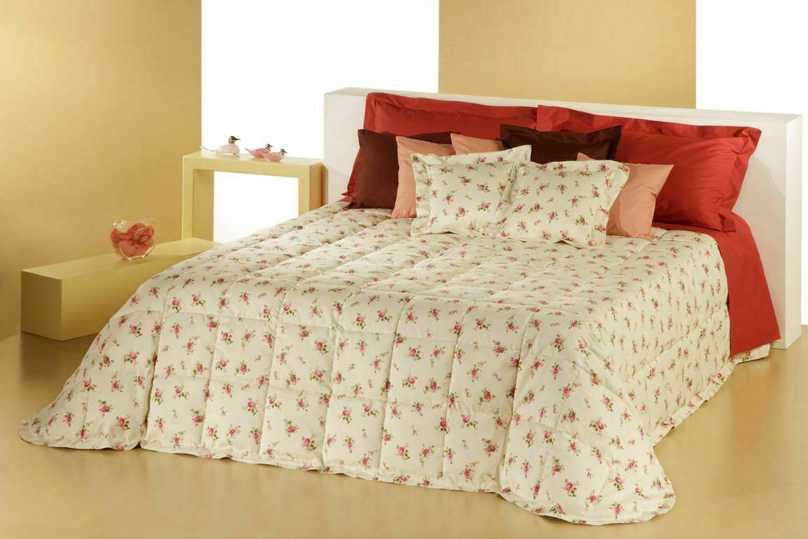 Eccezionale Trapunta invernale realizzata con altissima qualità artigianale, con tessuto superiore in fantasia e uno speciale puro cotone 100% tinta unita a tenuta di piuma per quello inferiore.