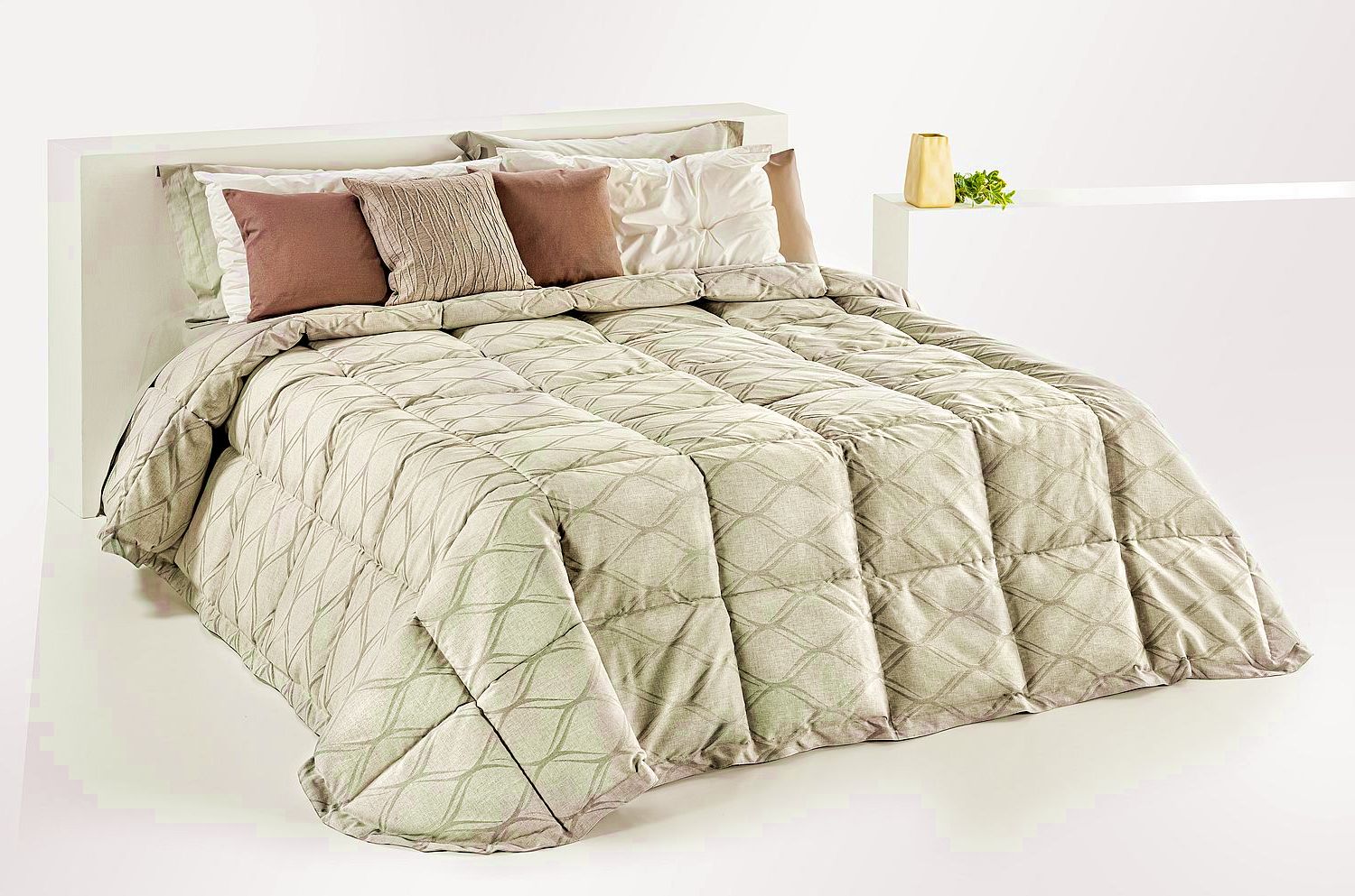 Imbottitura in piumino BASIC (90% Fiocco di piumino pregiato – 10% Piumette) e trapuntatura a quadri 30×30 circa, angoli ai piedi arrotondati.