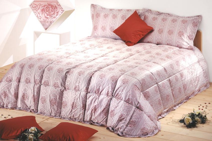 Imbottitura in piumino Basic (90% Fiocco di piumino pregiato – 10% Piumette) e trapuntatura a quadri 30×30 circa, angoli ai piedi arrotondati.