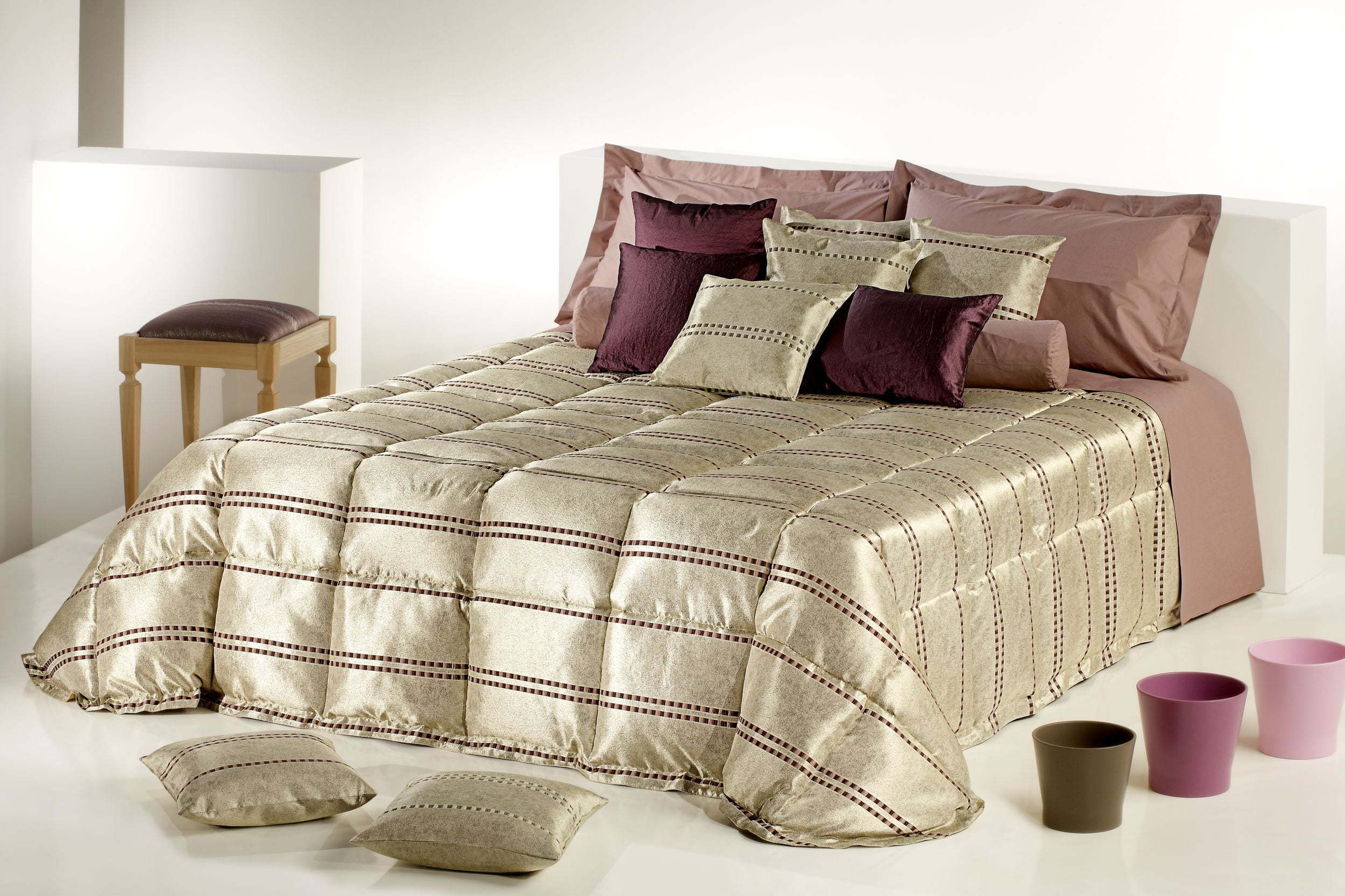 Eccezionale Trapunta autunnale in Piuma realizzata con altissima qualità artigianale, con tessuto superiore in fantasia moderna e uno speciale puro cotone 100% tinta unita a tenuta di piuma per quello inferiore.