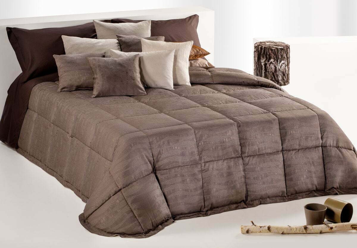 Eccezionale Trapunta autunnale in Piuma realizzata con altissima qualità artigianale, con tessuto superiore in fantasia moderna e uno speciale puro cotone 100% tinta unita a tenuta di piuma per quello inferiore.