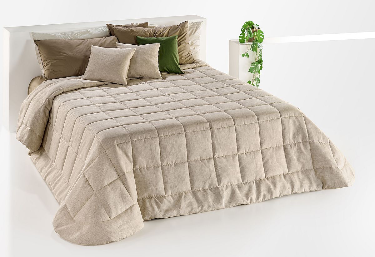 Leggerissima Trapunta primaverile-autunnale realizzata con altissima qualità artigianale, con tessuto superiore tintaunita 100% CANAPA e uno speciale puro cotone 100% tinta unita in quello inferiore.