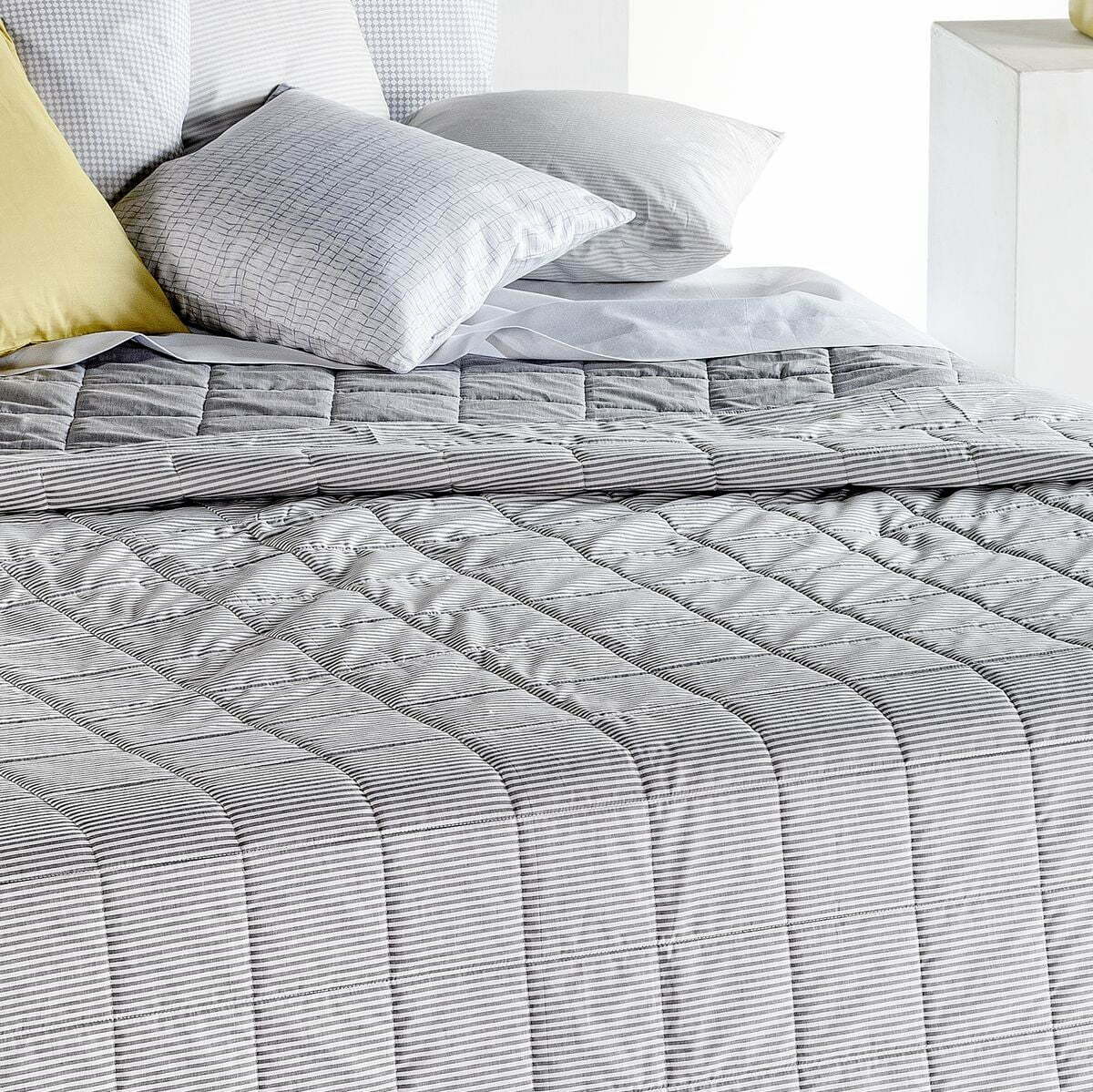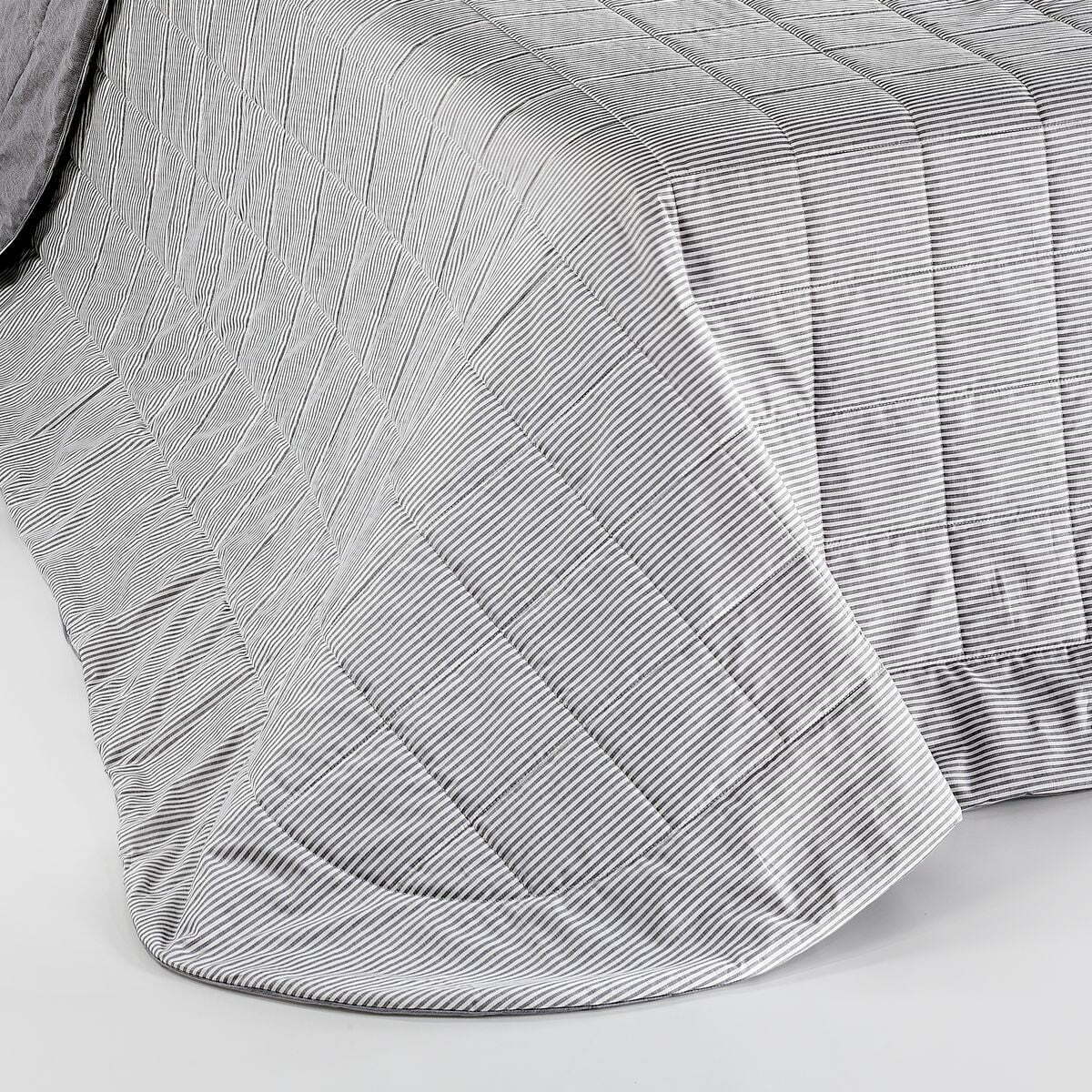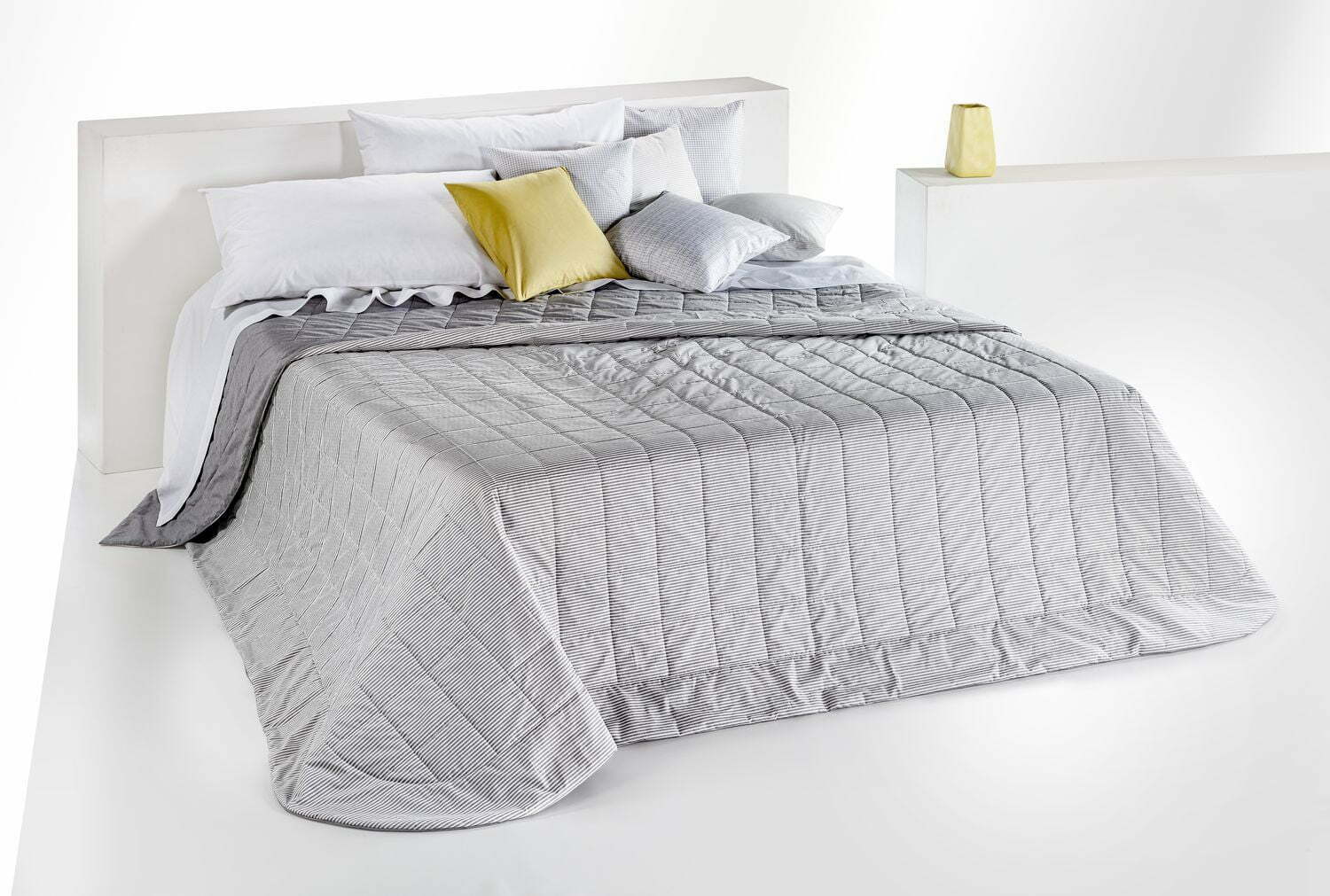 Leggerissima Trapunta estiva realizzata con altissima qualità artigianale, con tessuto superiore 100% cotone filotinto e uno speciale puro cotone 100% tinta unita in quello inferiore.