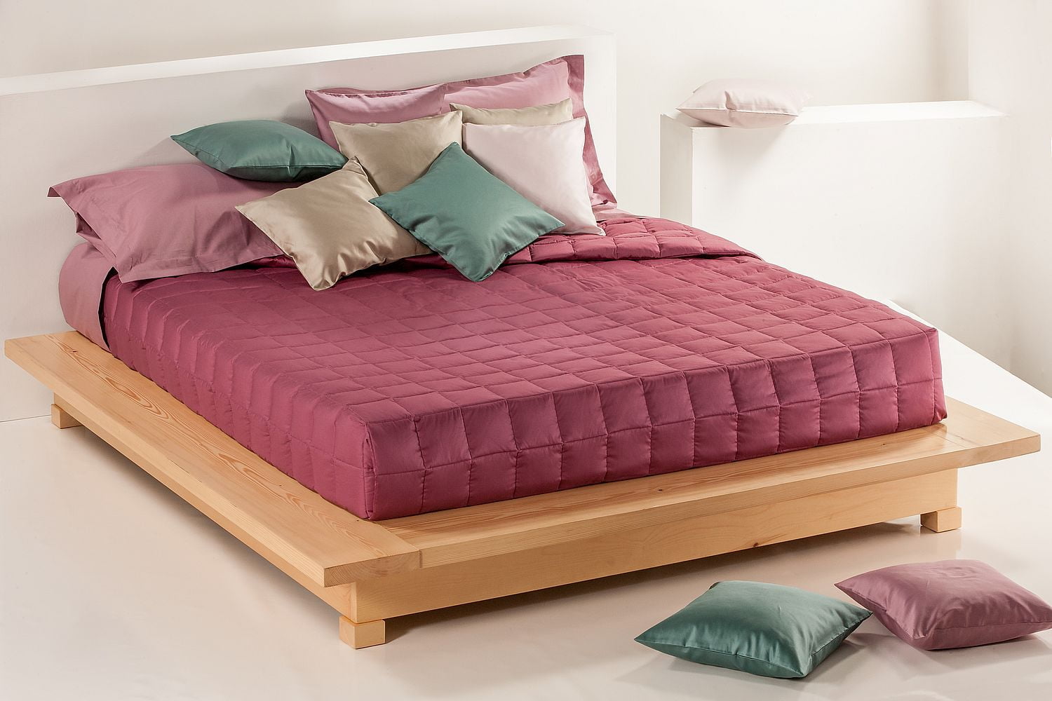Leggerissima Trapunta estiva-primaverile realizzata con altissima qualità artigianale, con tessuto superiore in tinta unita 100% raso di cotone e uno speciale puro cotone 100% tinta unita a tenuta di piuma per quello inferiore.