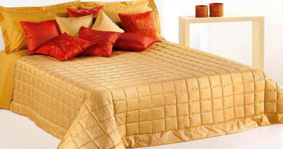 Imbottitura in piumino Serie 90 (90% Fiocco di piumino pregiato – 10% Piumette), trapuntatura a quadri 12×12 circa e angoli ai piedi tagliati.